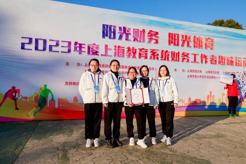11月19日,2023年度上海教育系统财务工作者“阳光财务 阳光体育”运动会在东方绿舟举行。来自上海各高校财务部门、市教委财务处、财资中心等45家单位、约1100人参加比赛。我院财务处和上海工艺美术职业学院财务处联合组队参加比赛,并获得二等奖的好成绩。